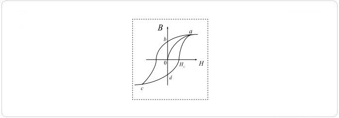一般磁性材料都有S形狀曲線(xiàn)的特性,稱(chēng)之為磁滯回路(hysteresis loop),如圖2所示。此磁滯回路曲線(xiàn)建立在B—H的坐標(biāo)軸上,為磁性材料遭受完全磁化與非磁化周期,圖示為典型磁滯曲線(xiàn)的鐵心,如果曲線(xiàn)由a點(diǎn)開(kāi)始,此點(diǎn)表示最大正磁化力,至b點(diǎn)磁化力為零,然后下降至c點(diǎn)為最大負(fù)磁化力,再至d點(diǎn)磁化力為零,最后返回最大正磁化力的a點(diǎn),此即為整個(gè)磁性周期。高導(dǎo)磁率、低矯頑力磁芯的磁滯回線(xiàn)如圖3所示。