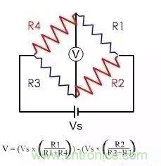原理圖如上,當(dāng)壓力變化時(shí),電阻R1,R2,R3,R4發(fā)生變化,從而引發(fā)加載在電阻中間的電壓發(fā)生變化,這種變化反映出壓力值。