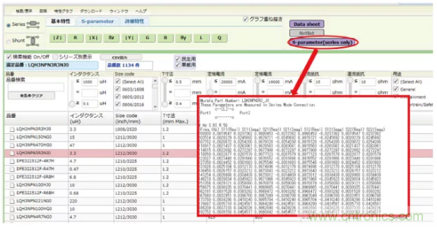 可以下載所選擇的型號的S參數。