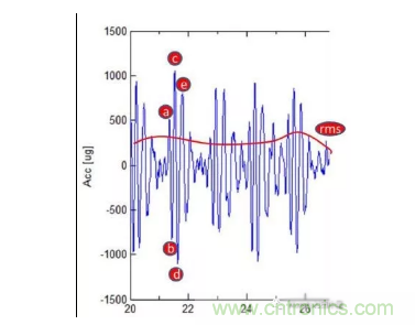 心沖擊信號圖(BCG)監(jiān)測心臟功能則沒有ECG的上述局限。心沖擊信號是血液流入主動脈、主動脈旋轉(zhuǎn)和血壓脈沖持續(xù)進入動脈引起的反沖信號。該運動主要沿著身體的縱向軸線,加速度幅度通常為1mg(1cm/s2)的量級。典型的BCG信號如下圖所示。